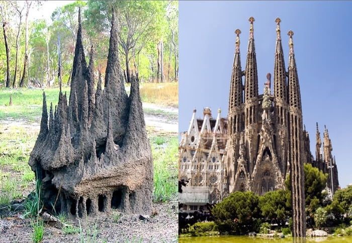 Étonnantes similitudes entre un nid de termites (à gauche) et la Sagrada Família (à droite)
