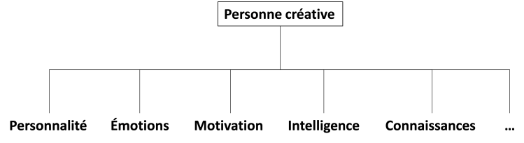 - la personne créative, qui regroupe toutes les variables individuelles associées à la créativité (l’intelligence et la personnalité, par exemple);
