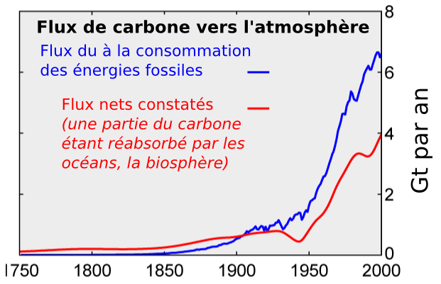 Émission de carbone vers l’atmosphère de 1750 à nos jours