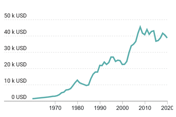 PIB par habitant en France au cours des 60 dernières années