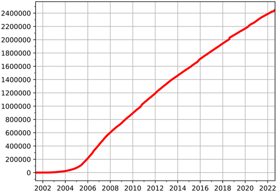 Évolution du nombre d’articles sur Wikipédia