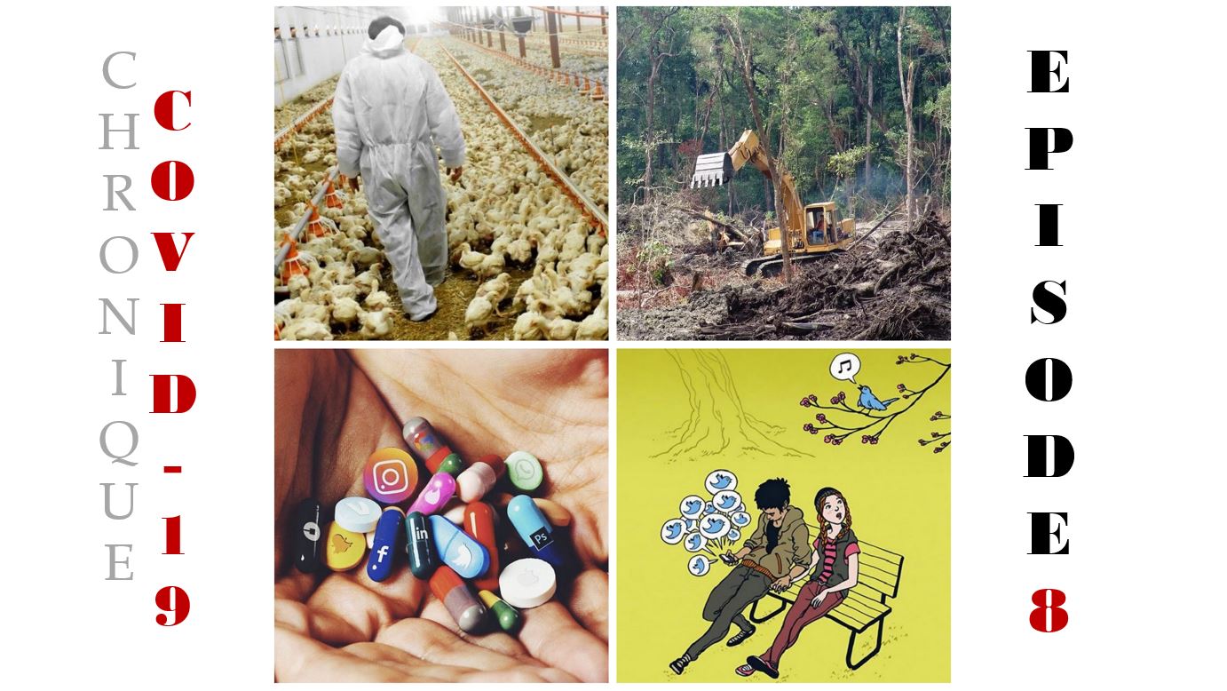 Chronique Covid-19, épisode 8/9. Dans cette partie, j’aimerais aborder d’autres problèmes de fond en lien avec la crise du Covid-19, en particulier les défis et dangers associés aux réseaux sociaux, ainsi que de certaines questions écologiques.